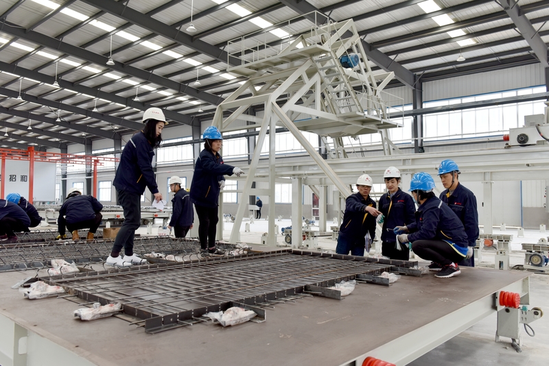 在環(huán)保裝配式PC構(gòu)建生產(chǎn)線,工人正忙著對(duì)模具進(jìn)行驗(yàn)收。王炳杰介紹,這套設(shè)備5000多萬(wàn),用的就是經(jīng)過(guò)處理的建筑垃圾,全自動(dòng)流水線作業(yè),4月中下旬開(kāi)始試運(yùn)營(yíng)。他說(shuō):“我們這條生產(chǎn)線自動(dòng)化程度高,能生產(chǎn)裝配建筑用的疊合板、樓梯、陽(yáng)臺(tái)、空調(diào)板等,蓋房子就和拼積木一樣?!?br />